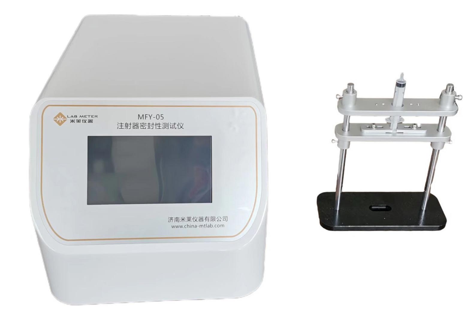 預(yù)灌封注射器器身密合性直接影響其使用適應(yīng)性能,是各生產(chǎn)企業(yè)重點(diǎn)關(guān)注的指標(biāo)之一。YBB00112004《預(yù)灌封注射器組合件》標(biāo)準(zhǔn)要求,選用MFY-05注射器密封性測試儀,取適量樣品,在注射器內(nèi)注入一半的水,將活塞插入注射器,移去護(hù)帽,排除殘留空氣,再用針頭護(hù)帽阻塞針頭,通過推桿,在注射器內(nèi)部的推桿膠塞上施加軸向壓力30N,保持5秒鐘。針與針座接觸部位不得有泄漏,活塞與針筒接觸部位不得有泄漏。